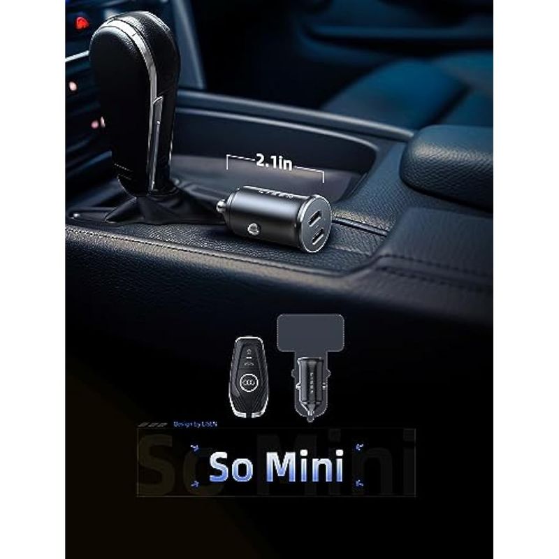 ?Tamaño más pequeño y compacto: el cuerpo pequeño del tamaño del pulgar 2.1 pulgadas de largo x 0.9 pulgadas de ancho se adapta a la mayoría de los encendedores de cigarrillos de automóvil y apenas sobresale más allá del borde de la salida, proporcionando un aspecto menos desordenado. Es nuestro cargador de coche más pequeño hasta la fecha: ligero y altamente portátil, por lo que puedes llevarlo a todas partes.