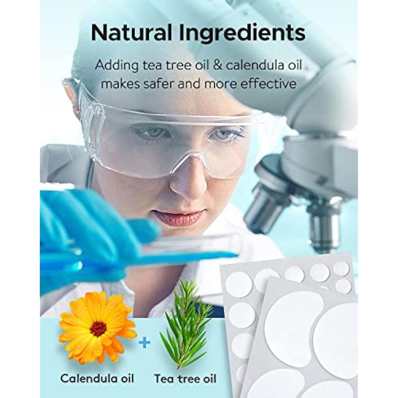 Todos los ingredientes suaves: parches para el acné para la cara que añaden aceite de árbol de té y aceite de caléndula, que ayuda a calmar el enrojecimiento, no estimulante en todo tipo de piel, incluida la piel sensible, segura y más eficaz