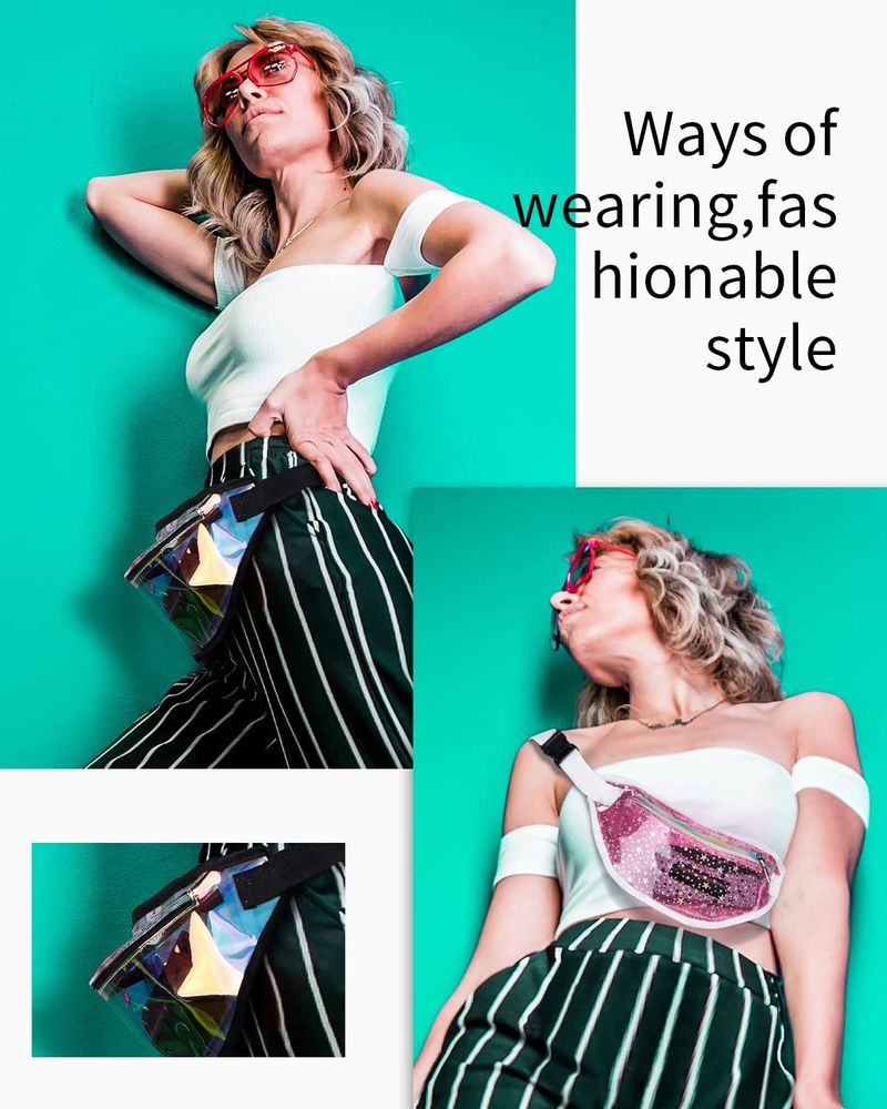 Aspecto atractivo de holográfico: ¿Buscas una cangurera especial y bonita? Esta cangurera para mujer es tan brillante con piel sintética de neón que siempre muestra diferentes resplandores brillantes de acuerdo a dónde estás, te hace ser una mujer bella que siempre atrae la atención de los demás.