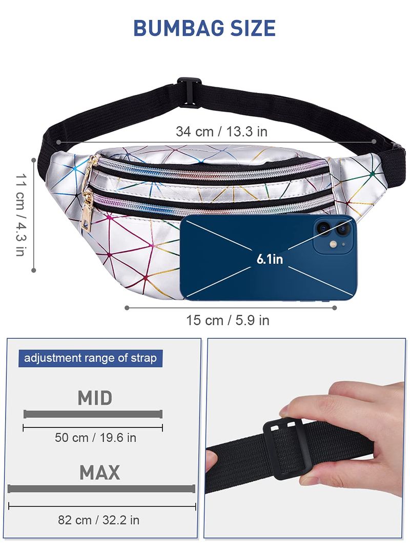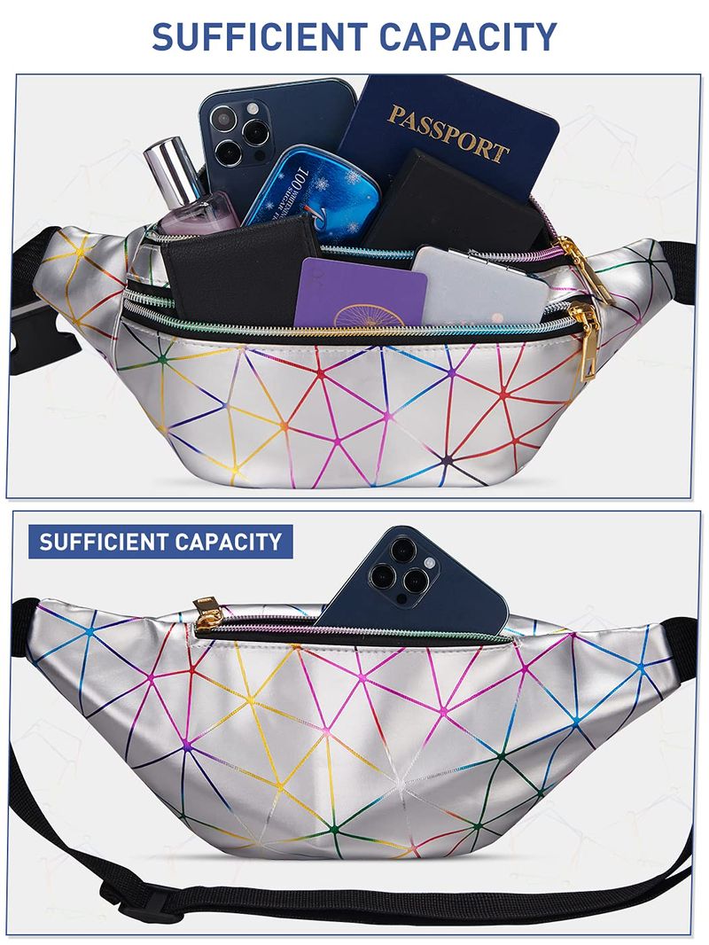 Livacasa - Cangurera holográfica linda, brillante e impermeable para mujer, cangurera para viajes,