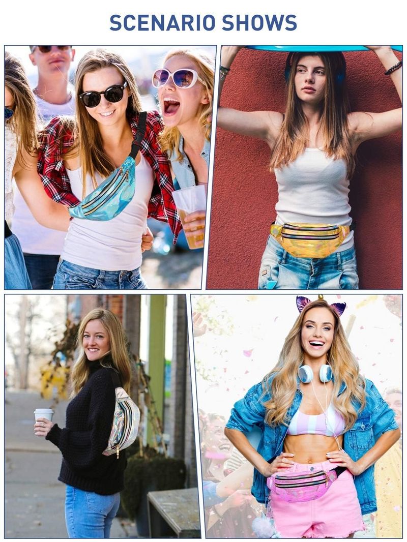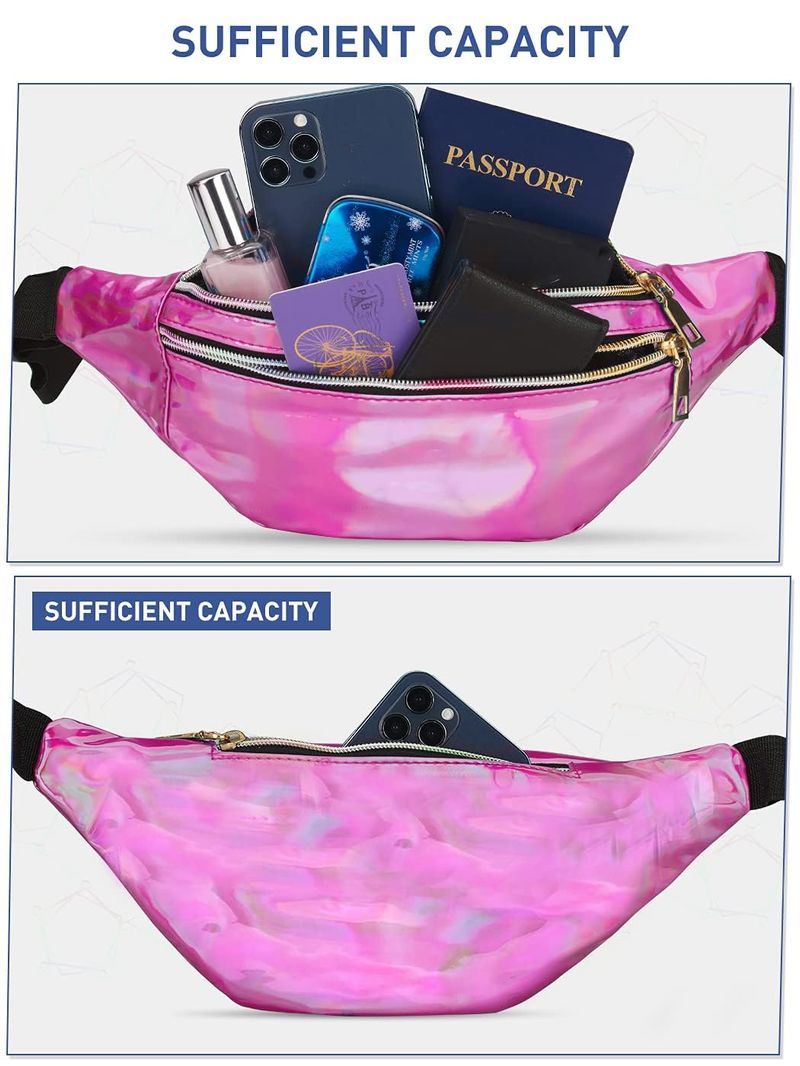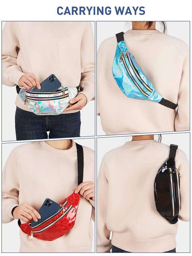 Livacasa - Cangurera holográfica linda, brillante e impermeable para mujer, cangurera para viajes,