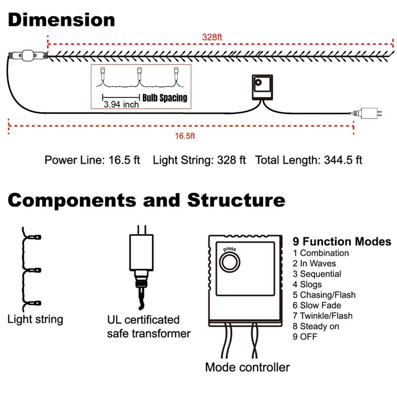 HOGARBAZARILUMINACIONLJLNION 1000 luces LED de Navidad, extralarga de 328 pies de alambre verde de Navidad para enchufar