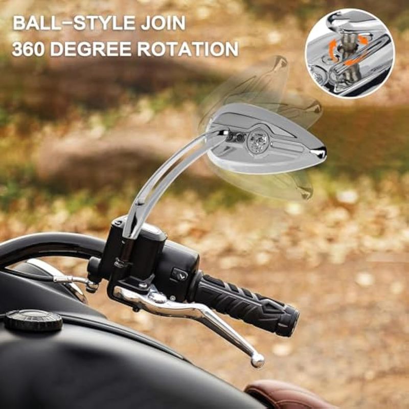 RODADOSMOTOSLKV Espejos retrovisores de motocicleta con forma de lágrima de calavera con perno roscado M8 M10,