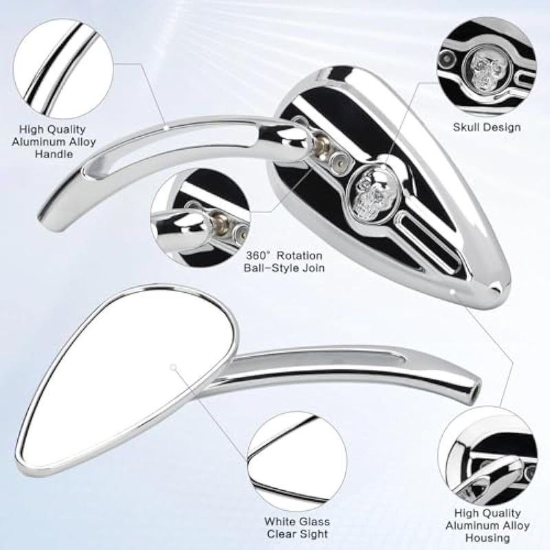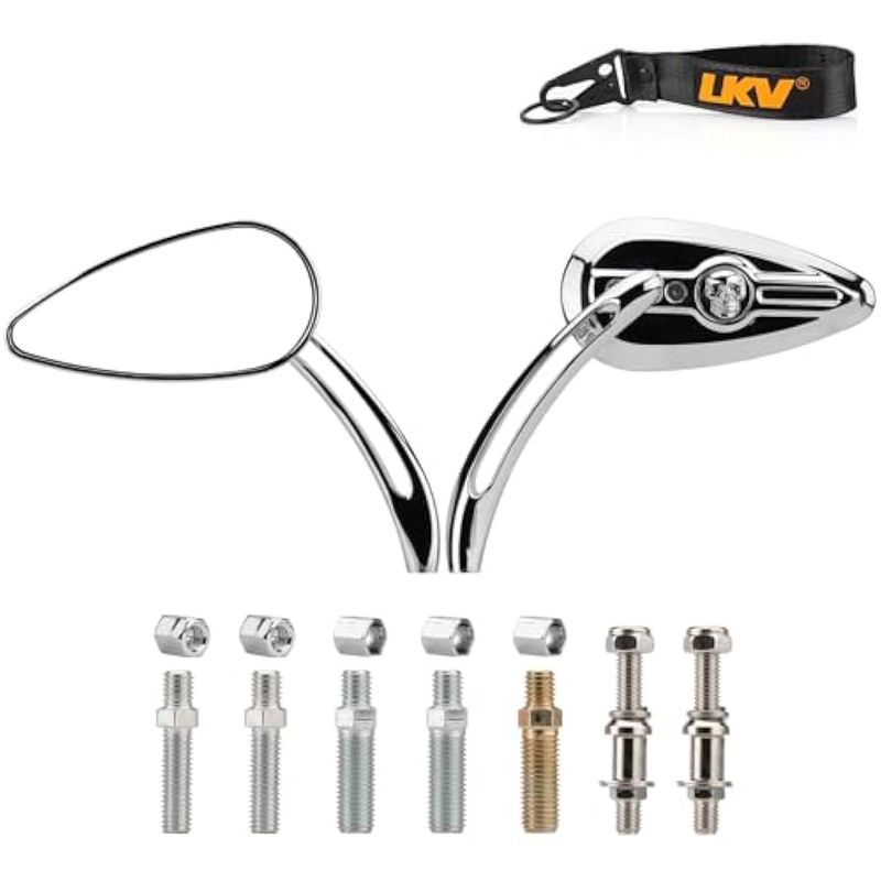 LKV Espejos retrovisores de motocicleta con forma de lágrima de calavera con perno roscado M8 M10,