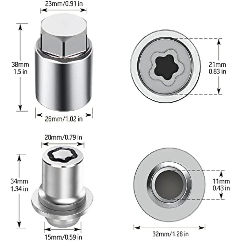 Llave de bloqueo de rueda M12 x 1.5 Tuerca de llanta de 1.34 pulgadas compatible con Toyota Camry