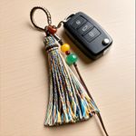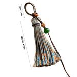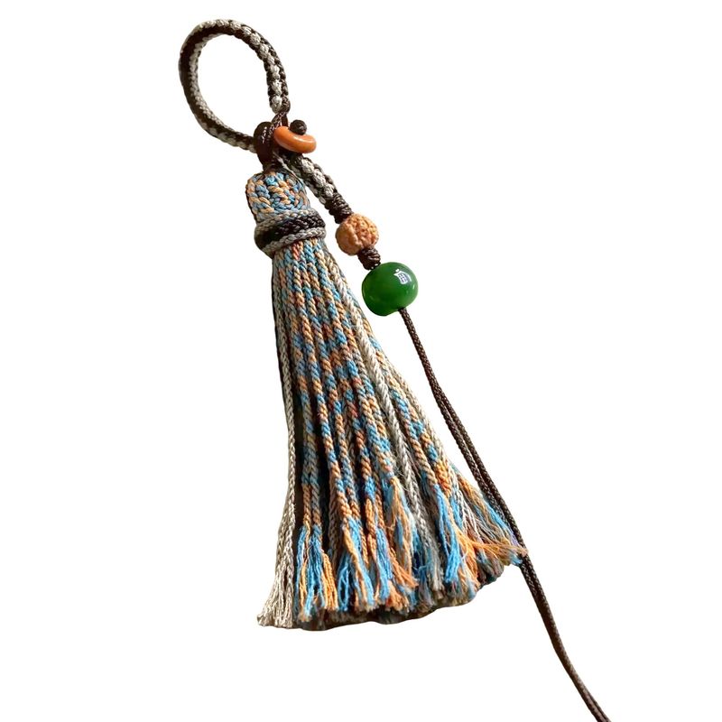 Llavero de borla de hilo tibetano hecho a mano, cadena de teléfono boho con cuentas de ámbar y jade,
