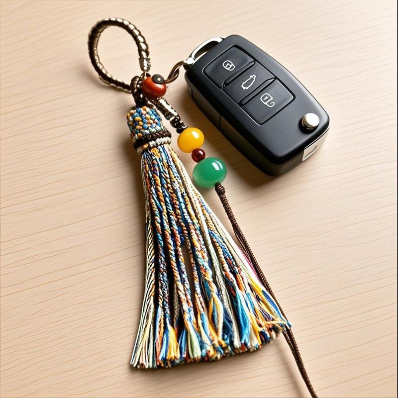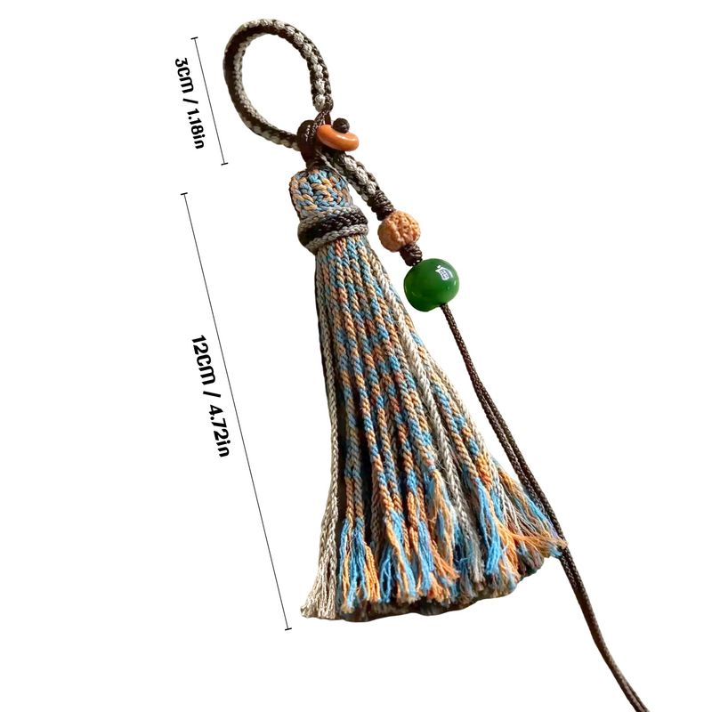 RODADOSHERRAMIENTAS PARA AUTOLlavero de borla de hilo tibetano hecho a mano, cadena de teléfono boho con cuentas de ámbar y jade,