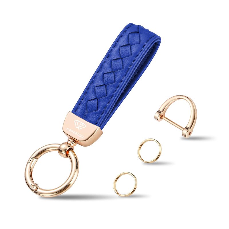 Llavero de cuero genuino para automóvil, hecho a mano, de piel de oveja para mujer, soporte