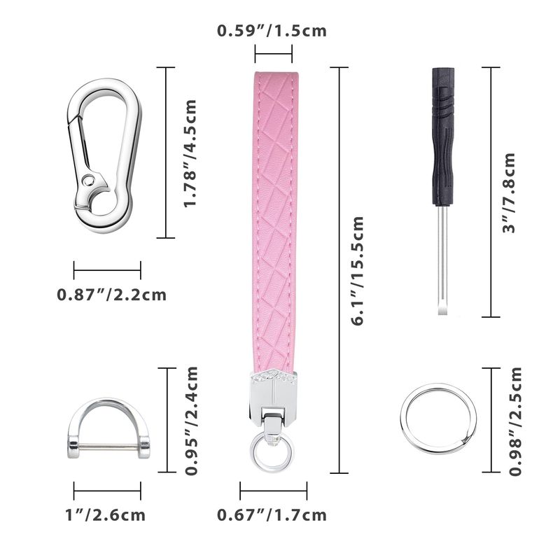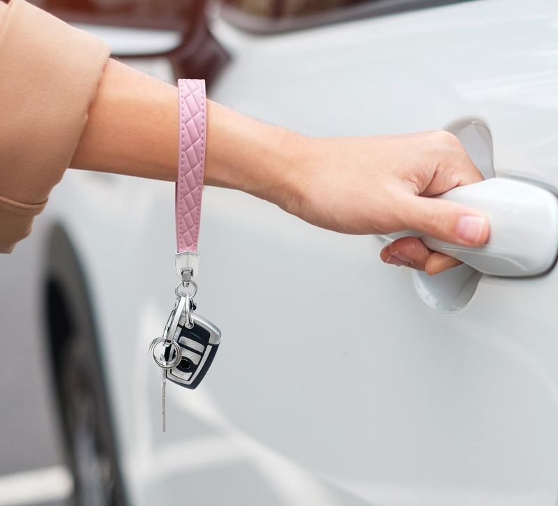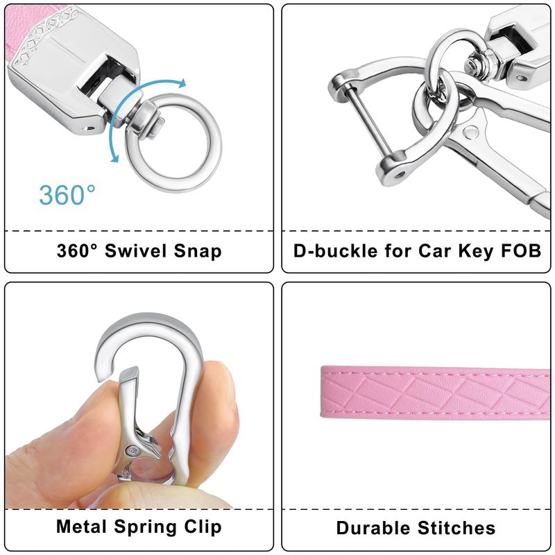 RODADOSHERRAMIENTAS PARA AUTOLlavero de piel con 3 llaveros y anillo en D antipérdida, Rosado/Plateado