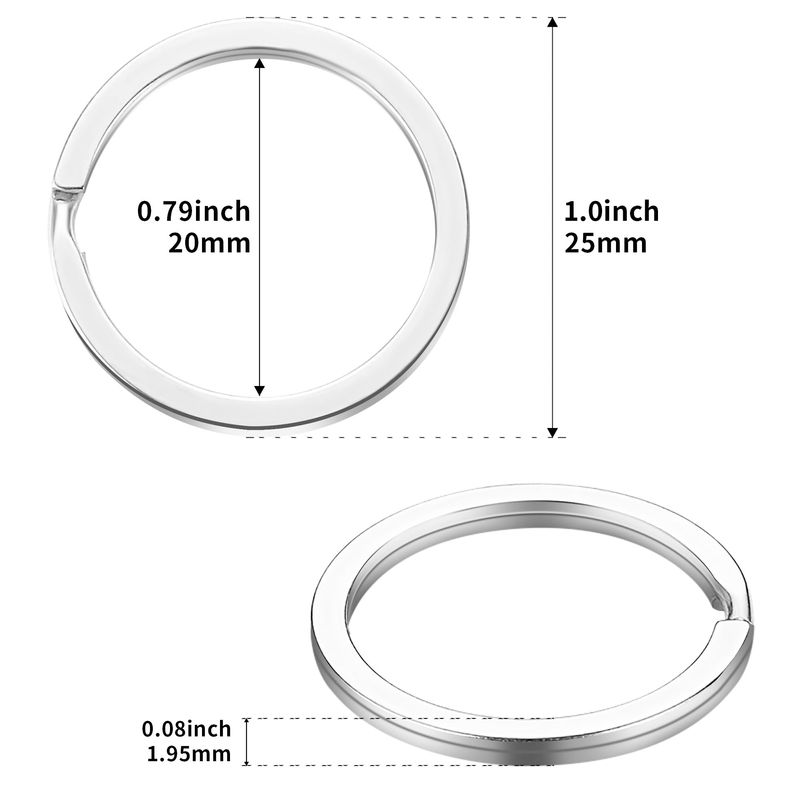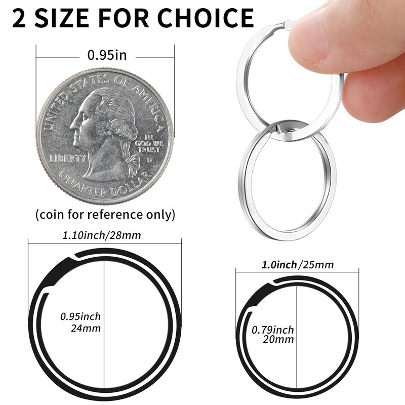 Llaveros, 12 llaveros de acero inoxidable para llaveros, 1 pulgada, anillo de llavero dividido plano