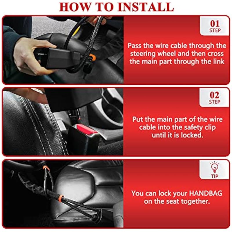 LOCKIETTA Cerradura del volante, bloqueo de cinturón de seguridad, antirrobo, dispositivo de coche
