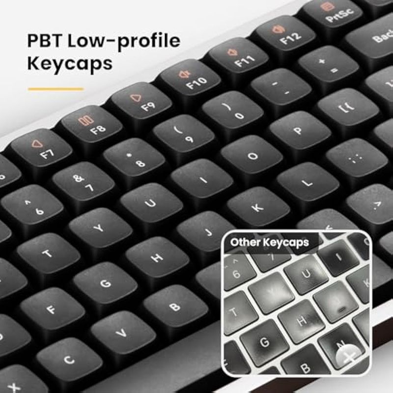 Teclas PBT de bajo perfil: Estas teclas utilizan un proceso avanzado de sublimación de tinte, conocido como "sublimación de cinco lados", que supera las técnicas ordinarias de doble disparo. Este proceso permite imprimir patrones vibrantes y altamente detallados en las teclas, asegurando un teclado visualmente atractivo y duradero. Nota: 'Fn+N' en la esquina inferior derecha es para activar la tecla de función del sistema correspondiente de WindowsAndroid. 'Fn+M' en la esquina inferior derecha es para activar la tecla de función del sistema correspondiente de MaclOS.
