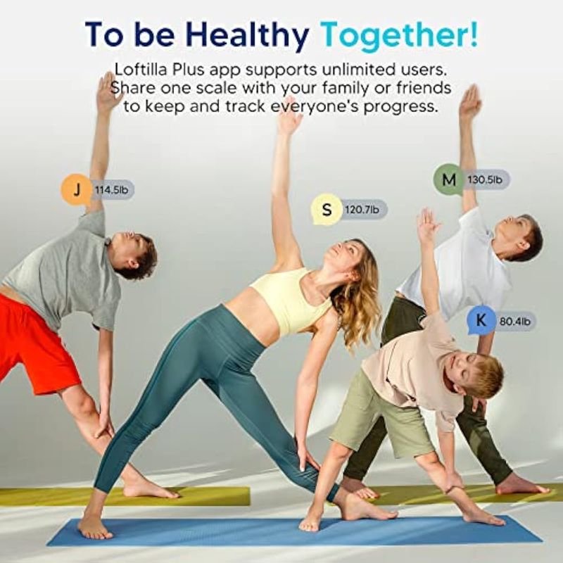 Una escala para toda la familia: la aplicación gratuita Loftilla Plus admite un número ilimitado de usuarios. Puedes compartir una báscula de peso corporal con tu familia para registrar y rastrear el progreso de todos y mantenerte saludable. Además, la báscula de peso LOFTILLA para personas se puede sincronizar con otras aplicaciones de fitness populares como Apple Health, Google Fit y Fitbit. Puede mantener todos sus datos en un solo lugar.