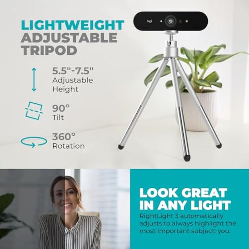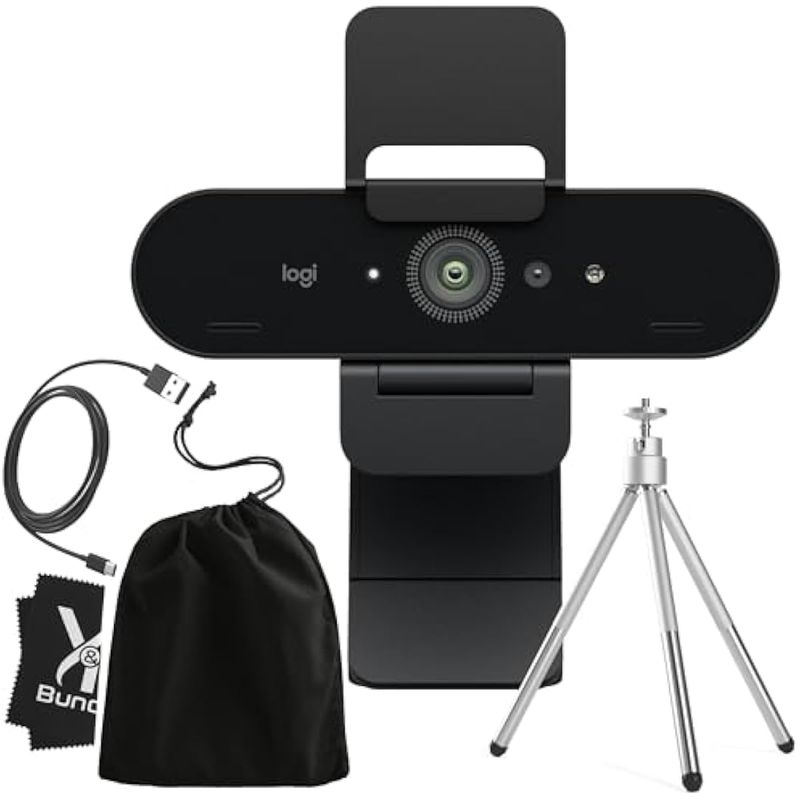 Paquete de transmisión web: tu nuevo paquete de cámara web logitech Brio incluye todo lo que necesitas para comenzar a transmitir desde tu PC o Mac en casa: cámara web Brio Ultra HD Pro Business con soporte, trípode ajustable de 5.5 a 7.5 pulgadas de altura y paño de limpieza de microfibra Y&R Bundles y bolsa de viaje.