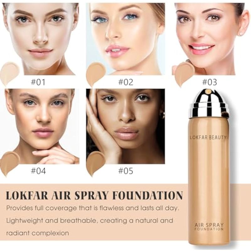 LOKFAR Aerosol de base AirBrush - Set de maquillaje en aerosol con brocha, base de cobertura