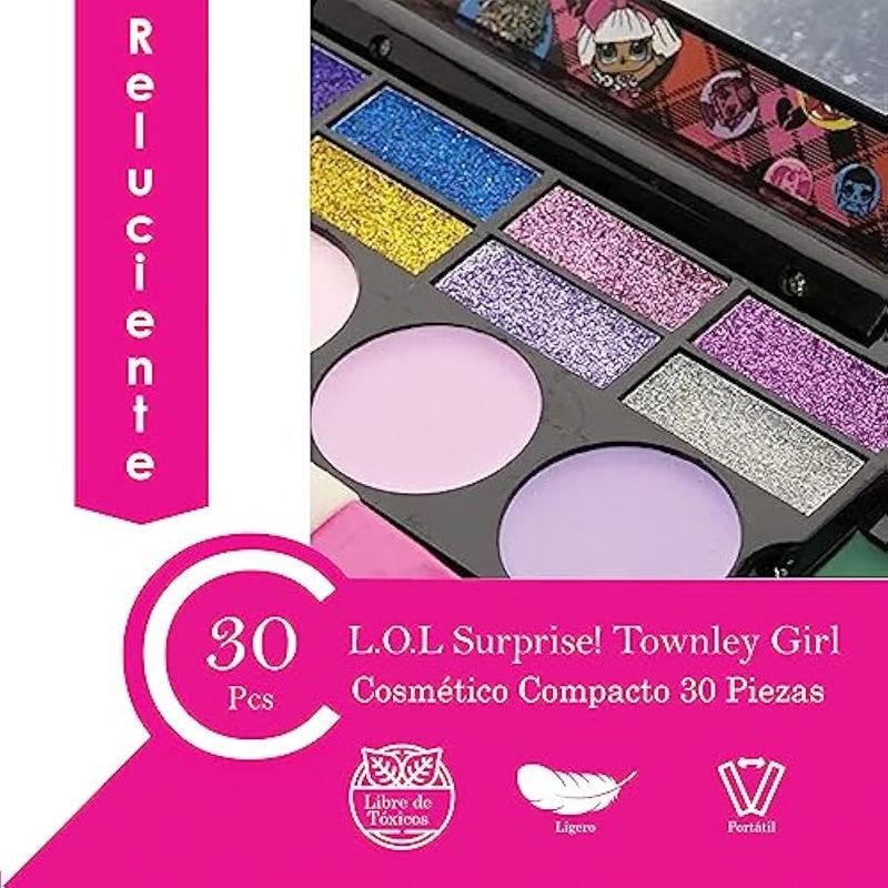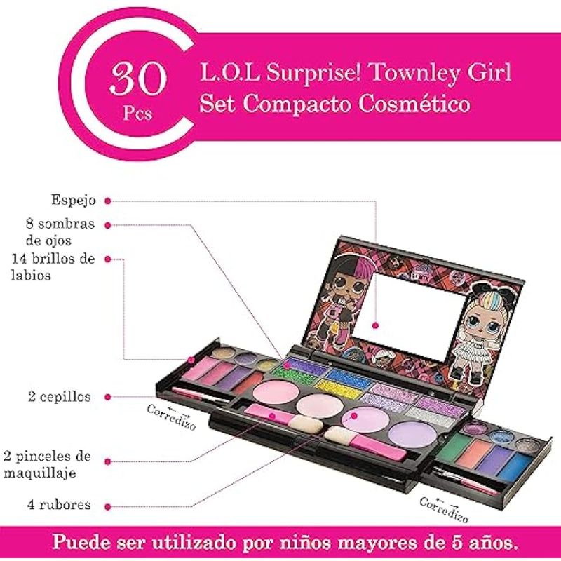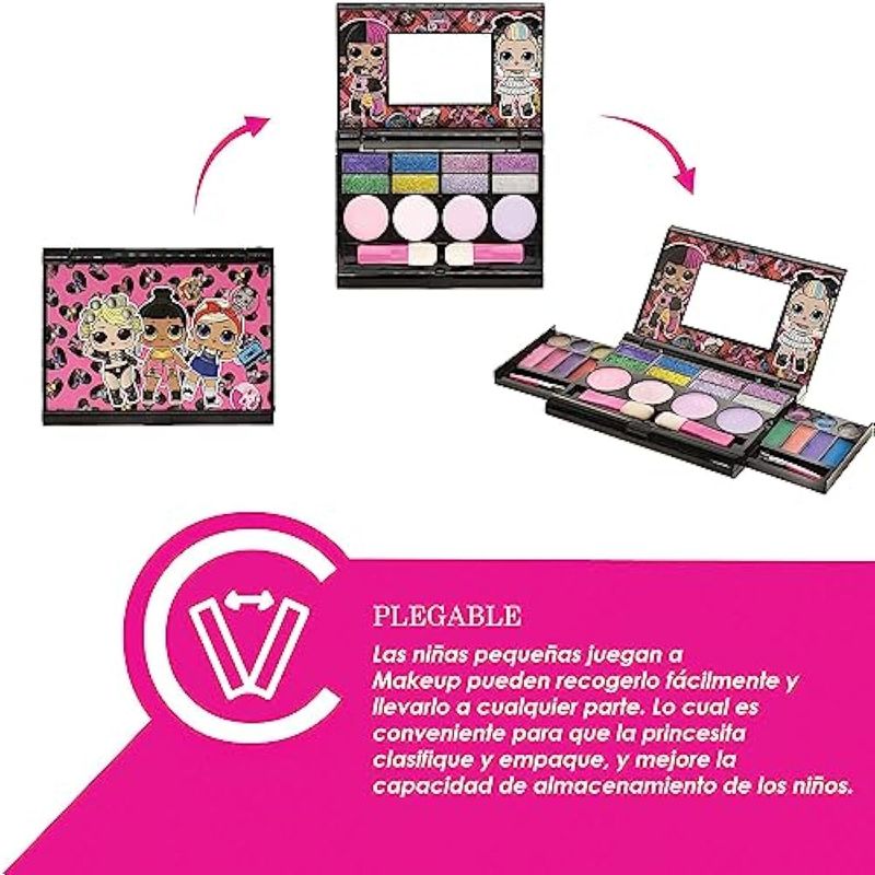 LOL Surprise - Juego de cosméticos compacto que incluye espejo, 14 brillos de labios, 8 sombras de
