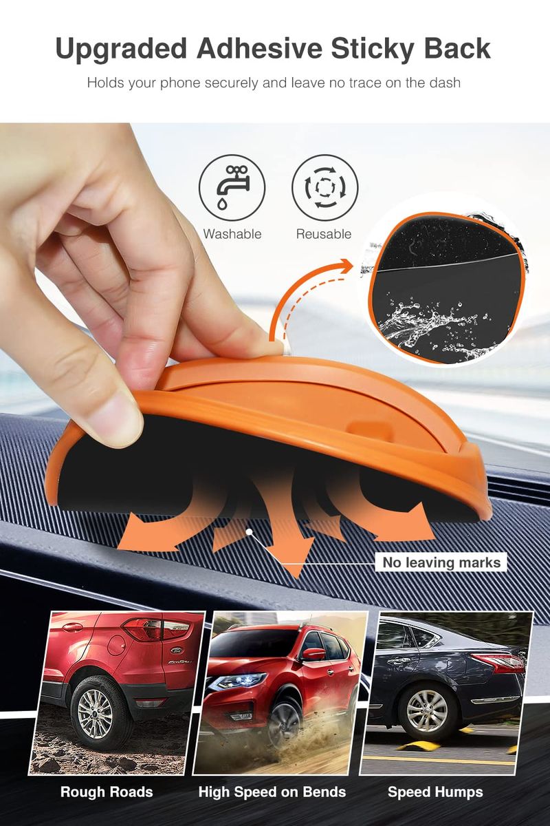 Lavable y reutilizable: la parte inferior del soporte para teléfono del coche está hecha de adhesivos de alta tecnología. Simplemente enjuaga con agua y sécalo, será el mismo que el nuevo