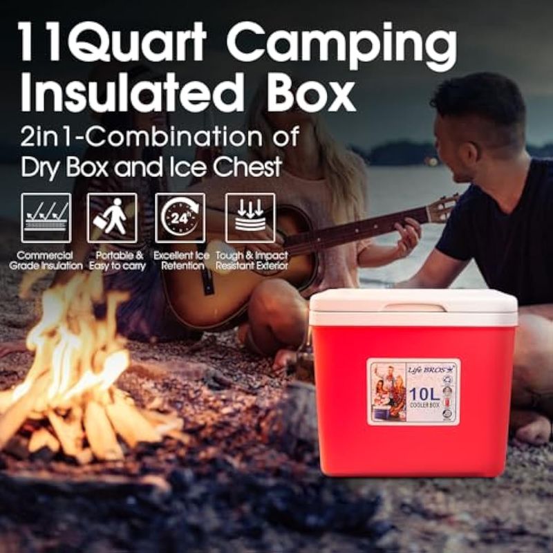 ?Amplia aplicación y dimensiones?Dimensiones externas: 11 x 8.3 x 10.3 pulgadas, dimensiones internas: 9.5 x 7 x 9 pulgadas. Este enfriador de 11 cuartos puede contener 11 latas, así como opciones azules y rojas. La caja de refrigeración al aire libre se ve fantástica y funciona brillantemente para viajar, picnics, parrillas o incluso para guardar en tu equipo de campamento.