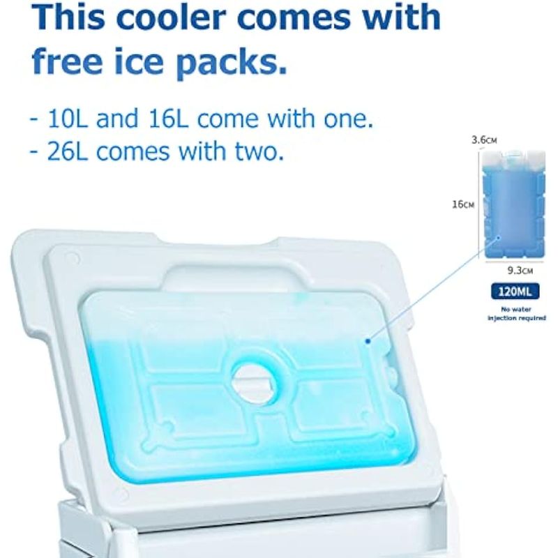 Diseño ligero y portátil: nuestra hielera está diseñada para girar la tapa, cuenta con un asa resistente que está diseñada ergonómicamente para mayor comodidad mientras se transporta. También estamos equipados con paquetes de hielo reutilizables duraderos, las bolsas de hielo se pueden abrochar en la tapa, lo que no solo ahorra espacio interno, también puede lograr un mejor efecto de refrigeración y aislamiento, es el enfriador perfecto para picnic al aire libre