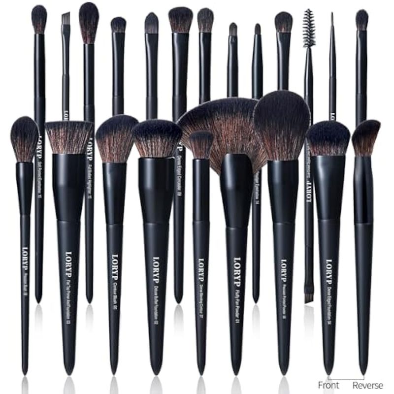 LORYP Juego de 21 brochas de maquillaje en polvo, rubor, base, corrector, iluminador, vegano, Pro