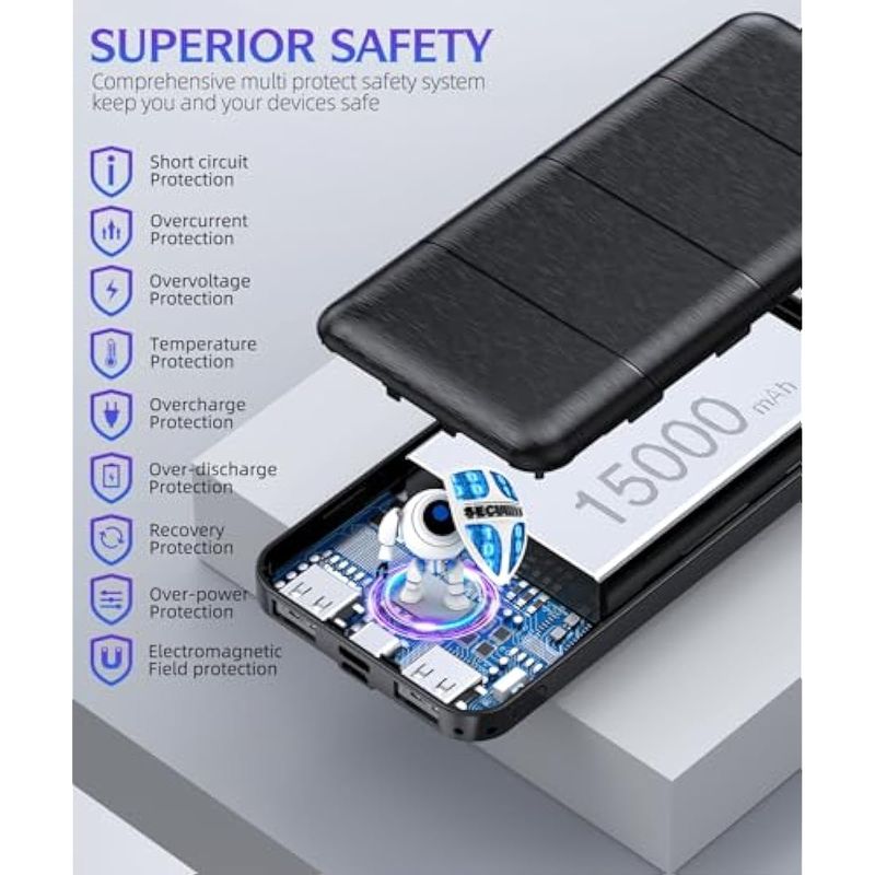 El banco de energía tiene una capacidad ultra alta de 15000 mAh que puede brindarle una excelente experiencia de duración de la batería. Te mantiene sin preocuparte extra por la batería baja del teléfono.