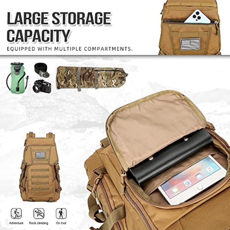 Escenarios aplicables: la mochila se puede utilizar como mochila militar táctica para paquete de asalto de 3 días, mochila de combate, mochila de camuflaje, mochila de supervivencia o bolsa de transporte diario para deportes al aire libre, senderismo, caza, pesca, campamento, entrenamiento.