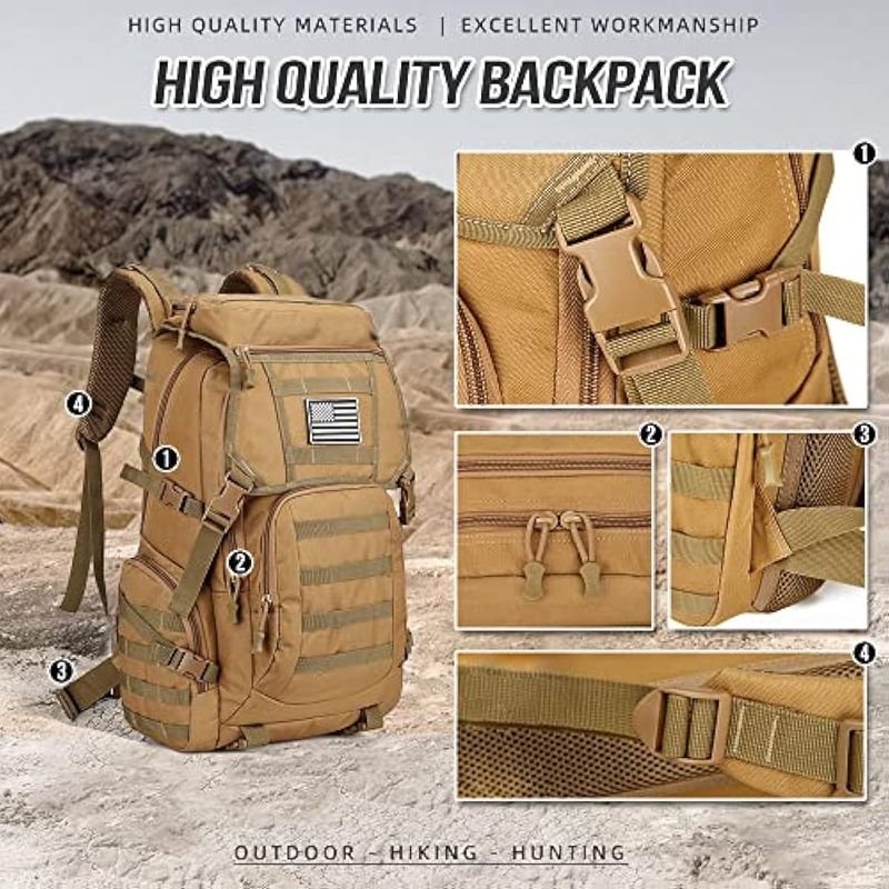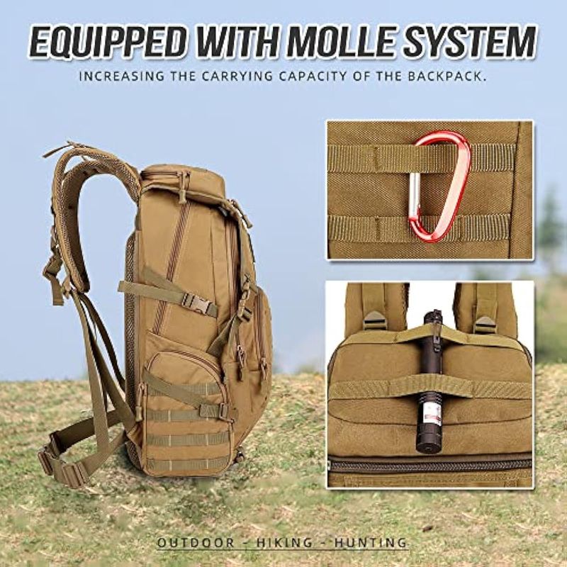 Mochila multifuncional: el sistema de expansión externa MOLLE diseñado en toda la bolsa puede fijar bolsa adicional o equipo al aire libre. Puedes cargar la bolsa de los vidrios, la bolsa de la botella de agua, los kits y otros accesorios.