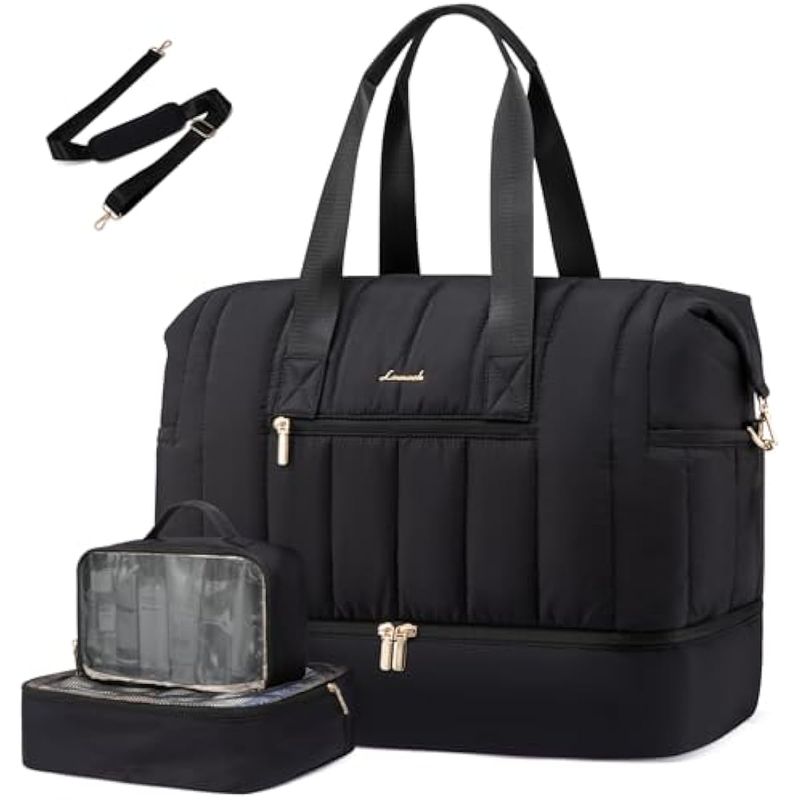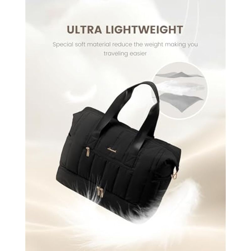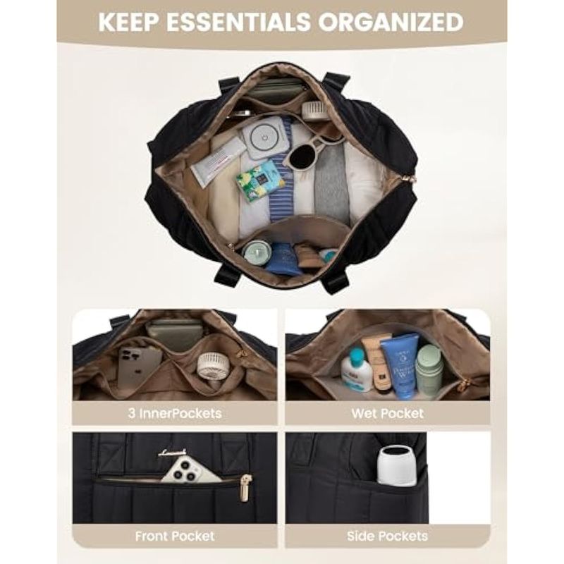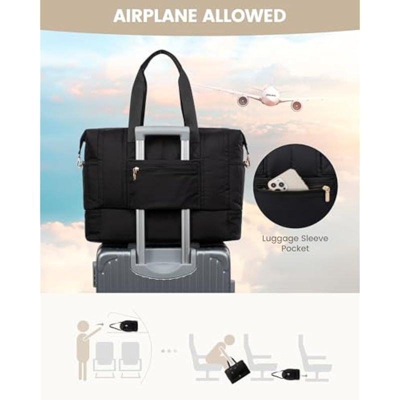 LOVEVOOK Bolsa de viaje acolchada, bolsas de fin de semana para mujer con compartimento para
