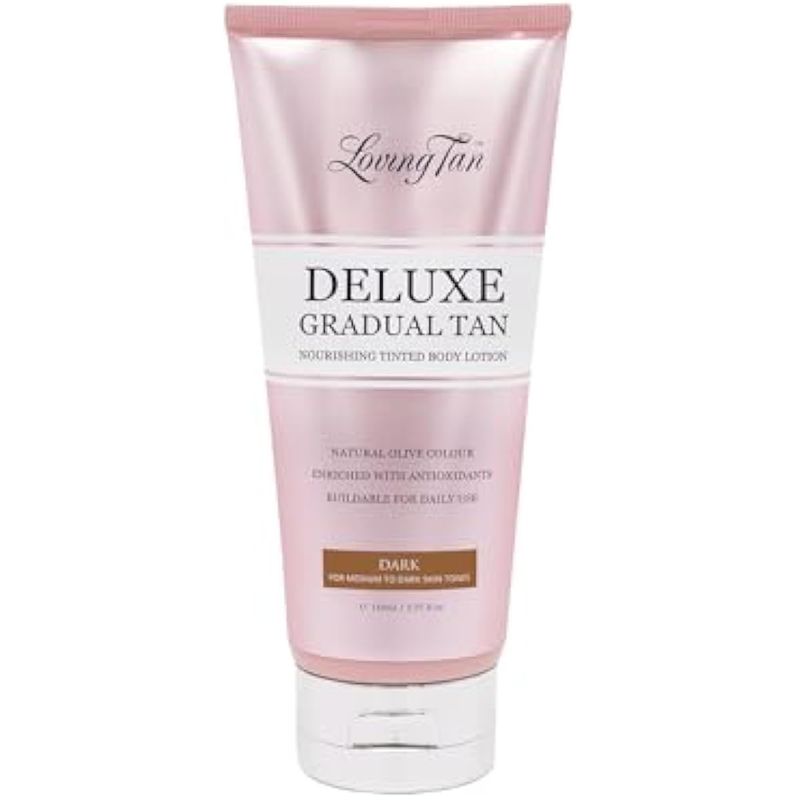 Hecho por Tan Lovers para los amantes del bronceado: la loción Deluxe Gradual Tan es una loción corporal autobronceadora ligera diseñada para mejorar o extender tu mousse Loving Tan favorita hasta por 2 semanas. ¡También puedes usarlo solo para construir tu tono perfecto!