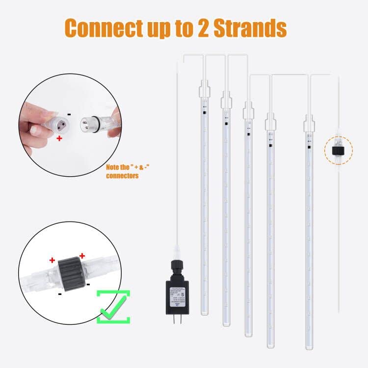Luces de lluvia de meteoritos para exteriores, 16 pulgadas, 10 tubos, 360 luces LED de nieve, luces