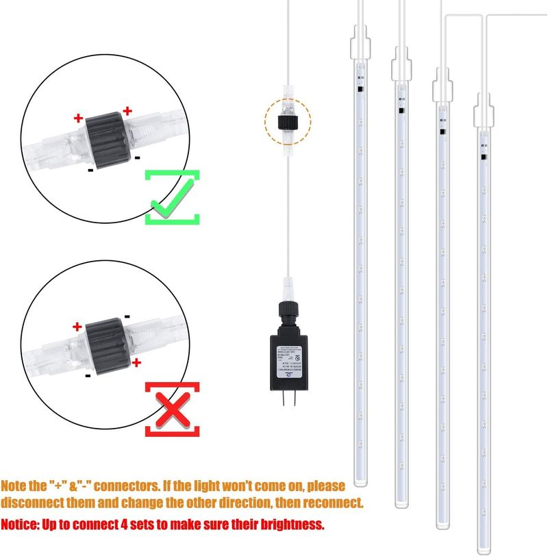 HOGARBAZARILUMINACIONLuces de lluvia de meteoritos para exteriores, 16 pulgadas, 10 tubos, 360 luces LED de nieve, luces