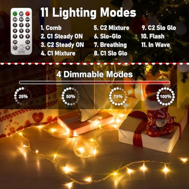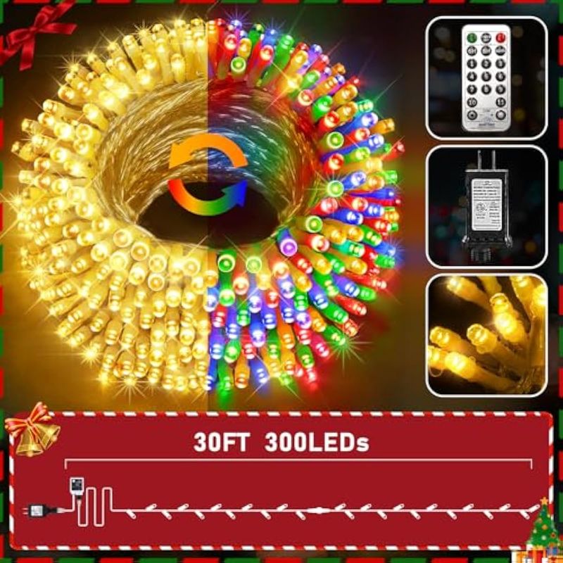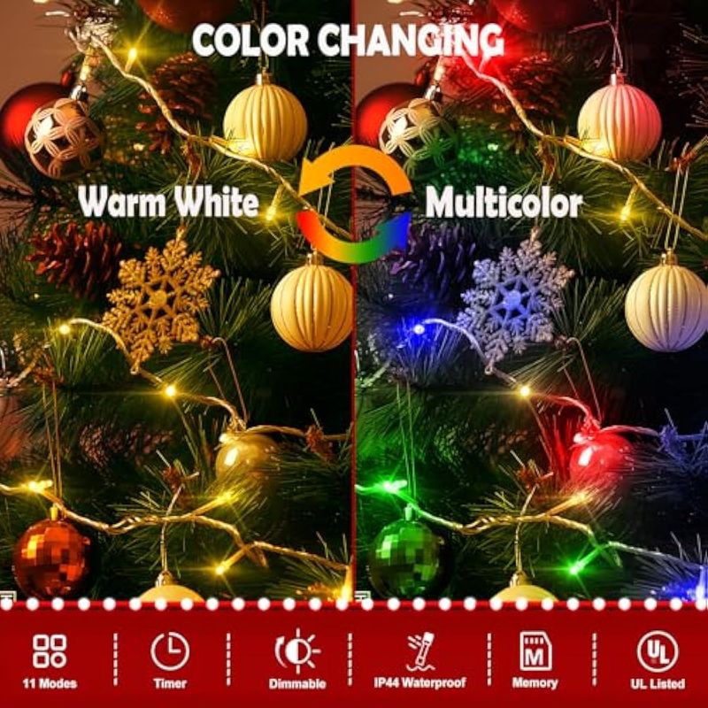 HOGARBAZARILUMINACIONLuces de Navidad que cambian de color 197 pies, 500 luces LED para exteriores, blanco cálido a