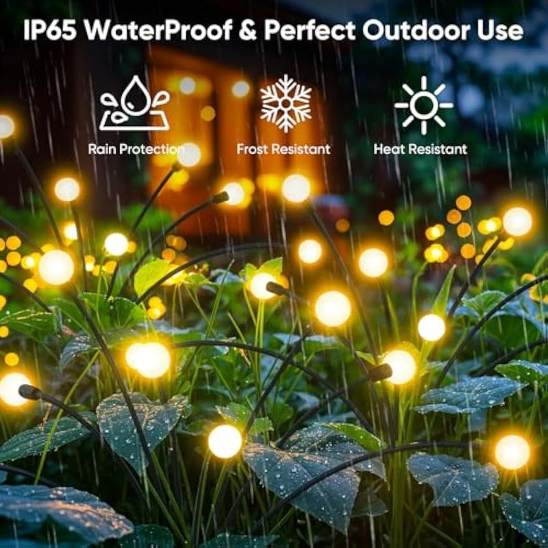 Increíbles luces solares para exteriores: nuestras luces decorativas solares son totalmente alimentadas por energía solar, no requieren cable ni electricidad, ahorrándole dinero en su lámpara de vacaciones y son respetuosas con el medio ambiente. No se necesitan herramientas para insertar estas luces solares de jardín en el suelo, encender el interruptor y disfrutar de la hermosa vista de ellas como las luciérnagas reales bailan con la brisa. Estas luces solares para exteriores están hechas de plástico ABS resistente a la corrosión, asegurando longevidad y durabilidad.