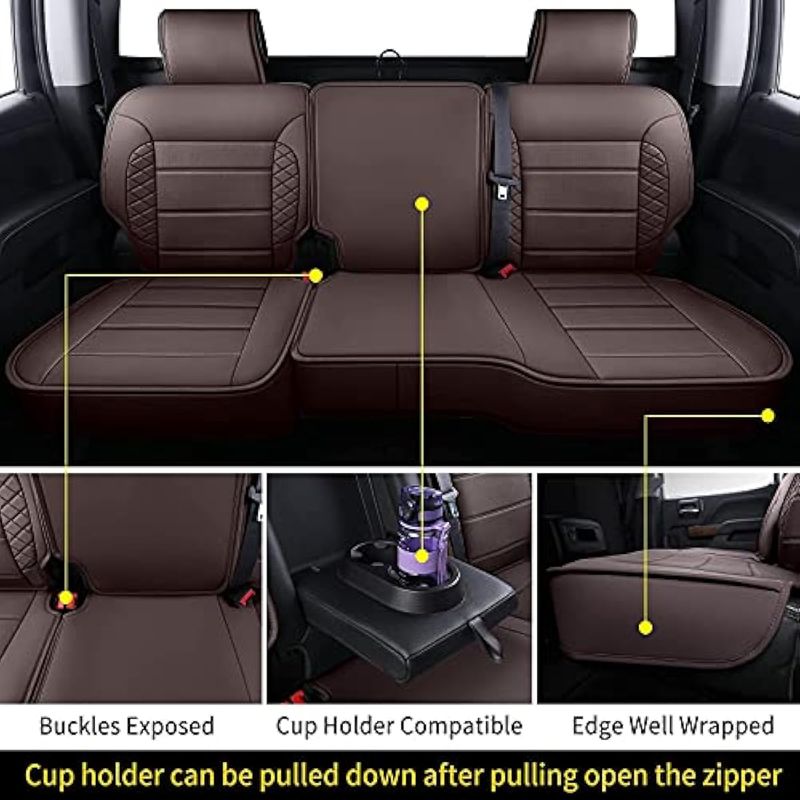 LUCKYMAN CLUB D04-S2 Fundas de asiento de cuero sintético impermeable con funda de consola central