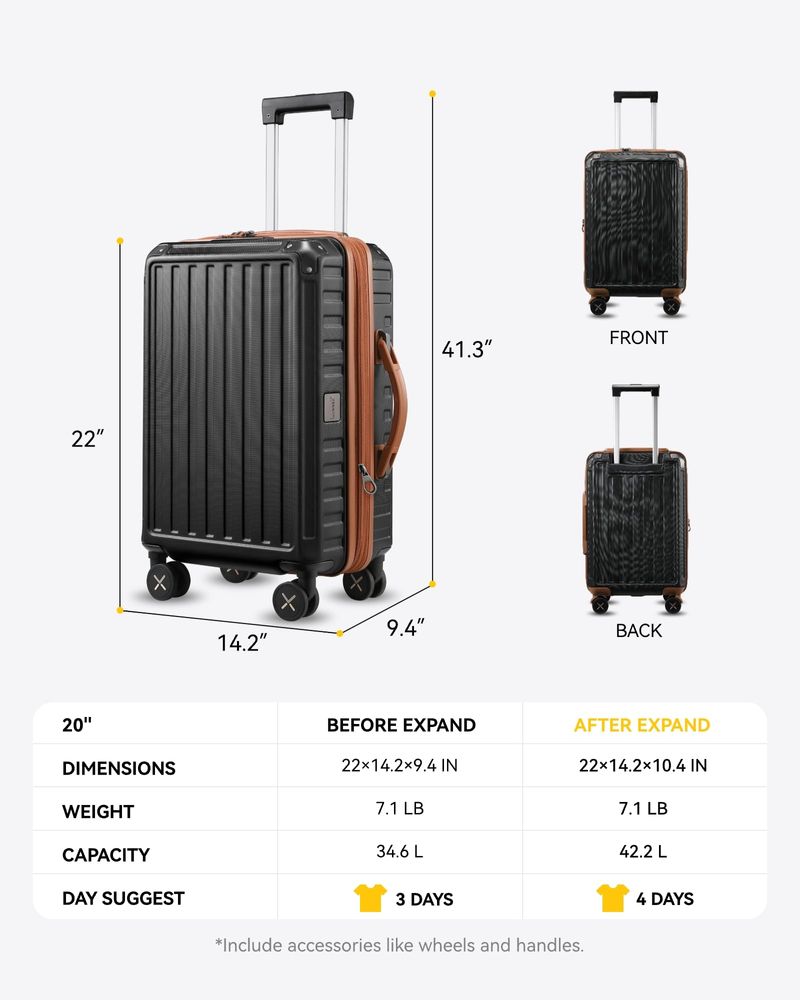 LUGGEX Equipaje de mano de 22 x 14 x 9 aprobado por aerolíneas con ruedas giratorias, maleta rígida