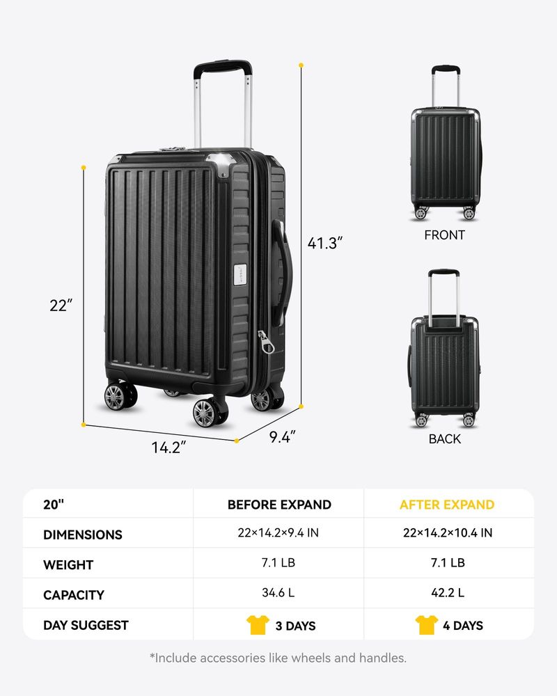 LUGGEX Equipaje de mano de 22 x 14 x 9 aprobado por aerolíneas con ruedas giratorias, maleta rígida
