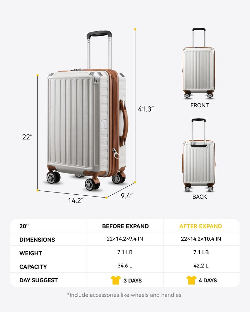 LUGGEX Equipaje de mano de 22 x 14 x 9 aprobado por aerolíneas con ruedas giratorias, maleta rígida
