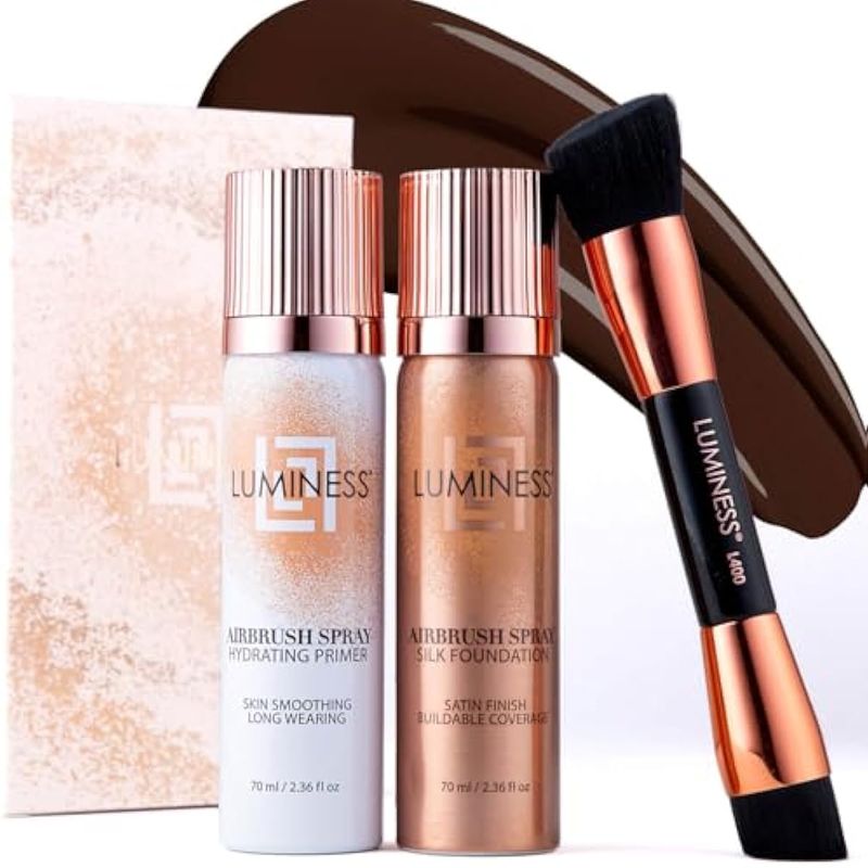 LUMINESS Kit de iniciación de base de seda para aerógrafo en aerosol, color oscuro intenso, base,