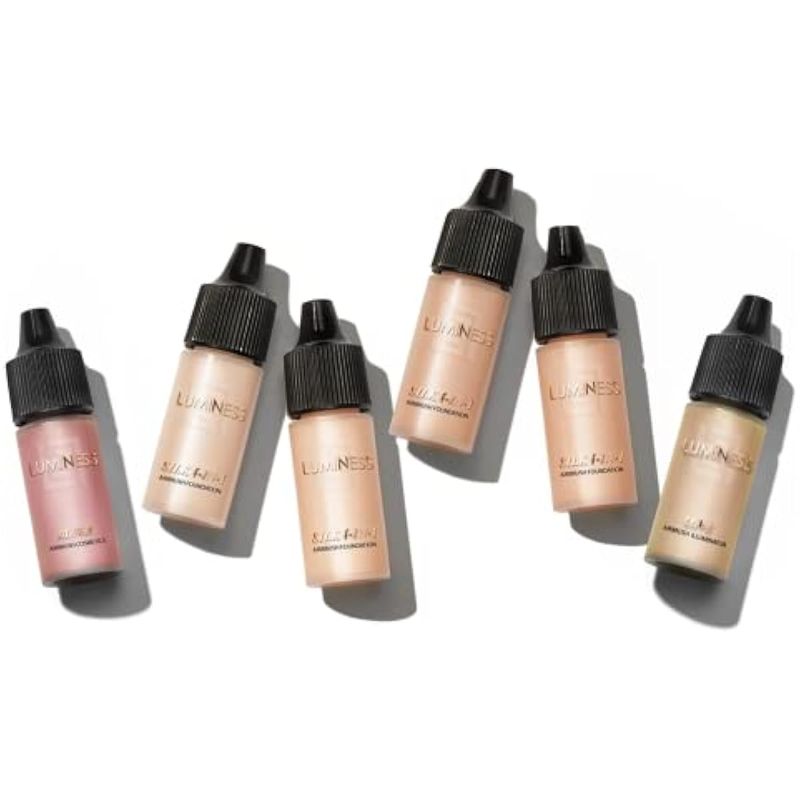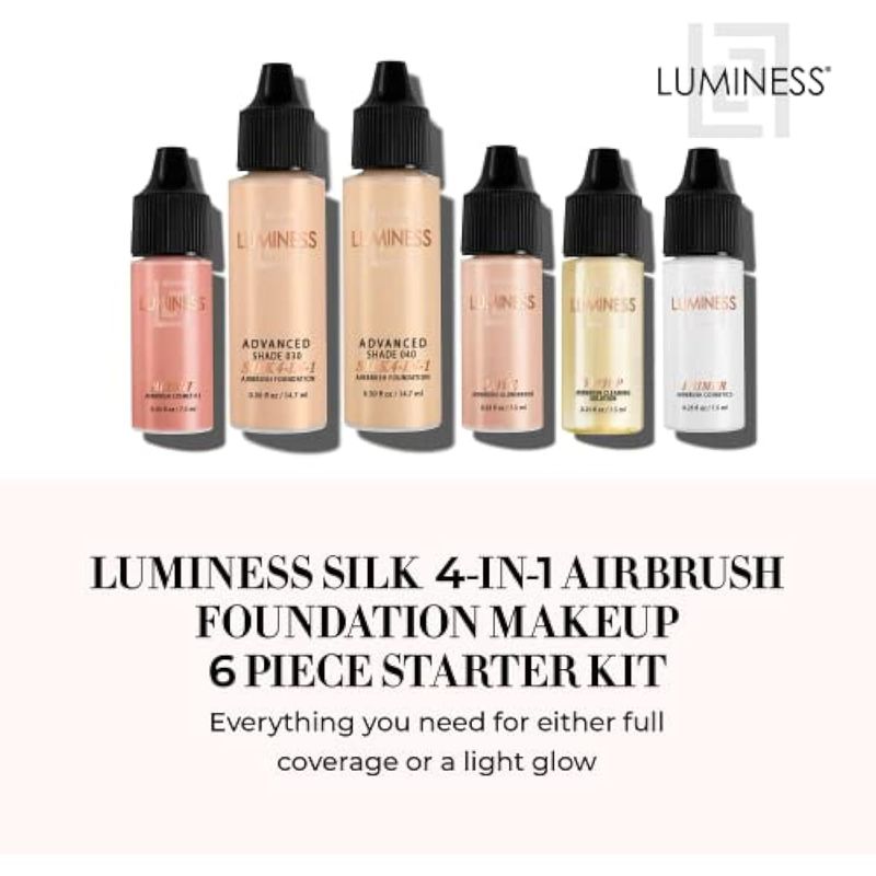 Luminess Silk 4 en 1 - Kit de maquillaje de base de aerógrafo - Cobertura media, 6 piezas - Incluye