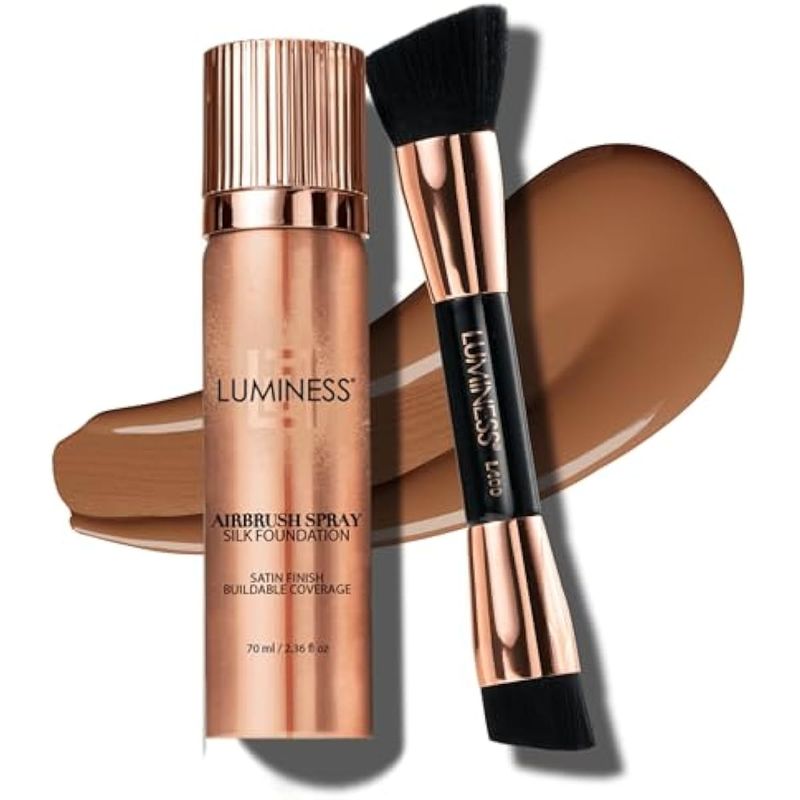 LUMINESS Silk Airbrush - Kit de base en aerosol y cepillo de pulido, base de cobertura completa y
