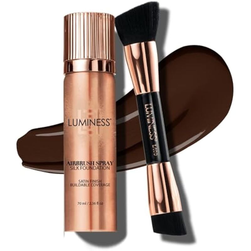 LUMINESS Silk Airbrush - Kit de base en aerosol y cepillo de pulido, base de cobertura completa y