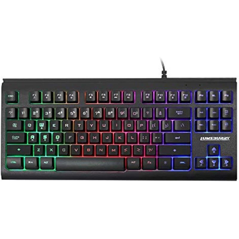 LUMSBURRY RAINBOW - TECLADO PARA JUEGOS CON RETROILUMINACIóN LED DE 87 TECLAS, TECLADO COMPACTO CON 12 TECLAS DE ACCESO DIRECTO MULTIMEDIA, TECLADO USB CON CABLE PARA PC, JUGADORES Y OFICINA