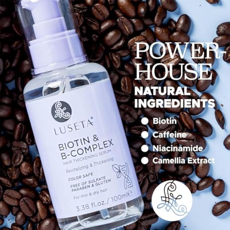 LUSETA BIOTIN B-COMPLEX - ACEITE PARA EL CABELLO ESPESANTE Y FORTALECIMIENTO PARA CABELLO FINO Y SECO, PROMUEVE EL CRECIMIENTO DEL CABELLO, 3.38 ONZAS