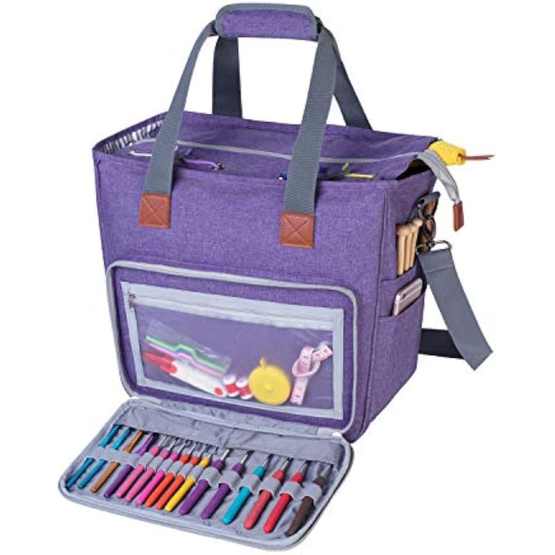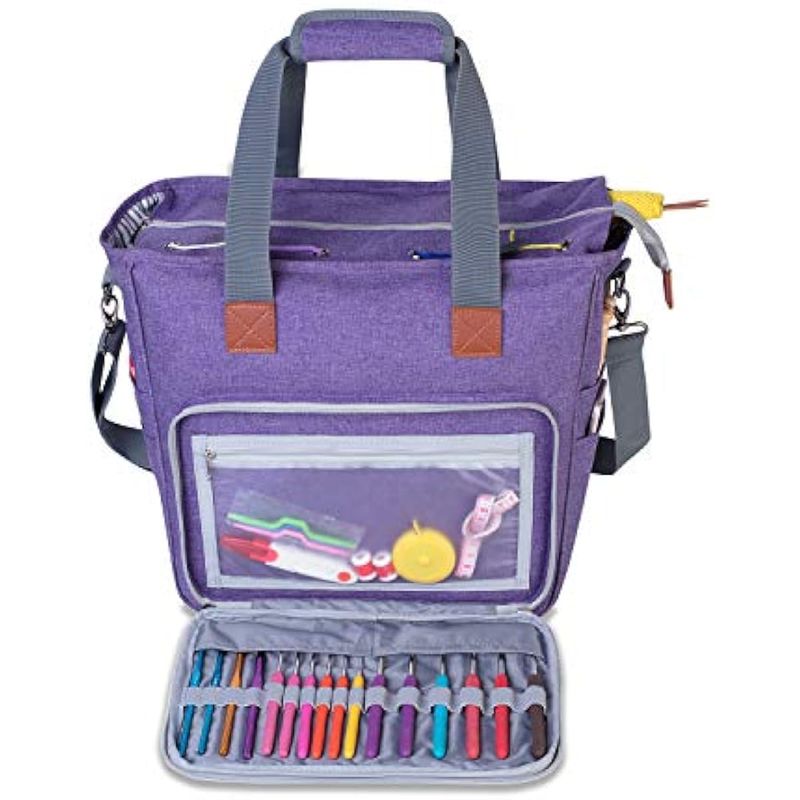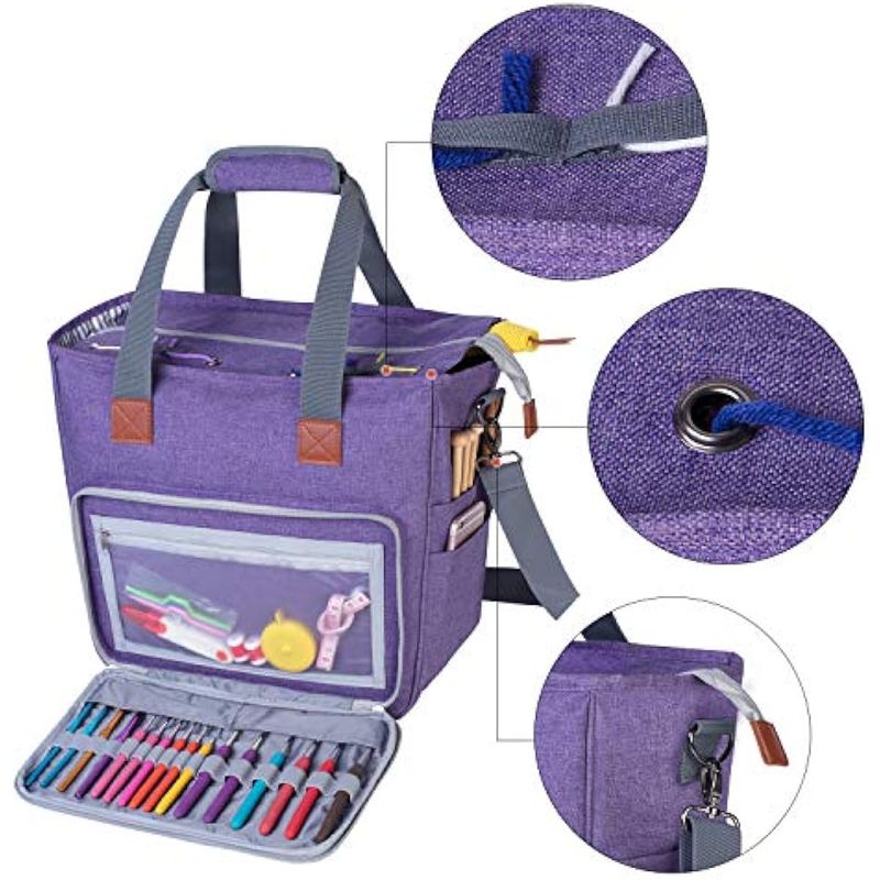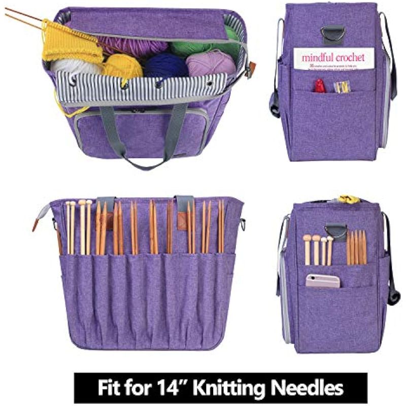 Luxja Bolsa de tejer con correas de hombro, bolsa de hilo para llevar proyectos, agujas de tejer,