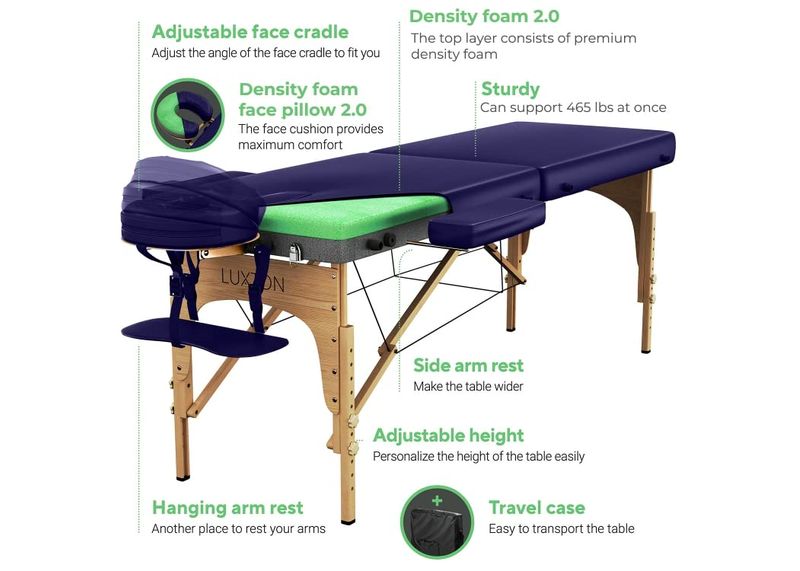 Luxton Home Mesa de masaje de espuma de alta calidad, portátil, plegable, altura ajustable, 72