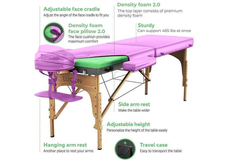 BELLEZA Y SALUDBELLEZA Y CUIDADO CORPORALLuxton Home Mesa de masaje de espuma de alta calidad, portátil, plegable, altura ajustable, 72