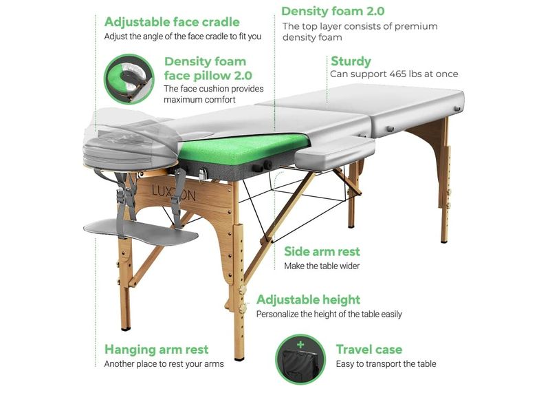 Luxton Home Mesa de masaje de espuma de alta calidad, portátil, plegable, altura ajustable, 72