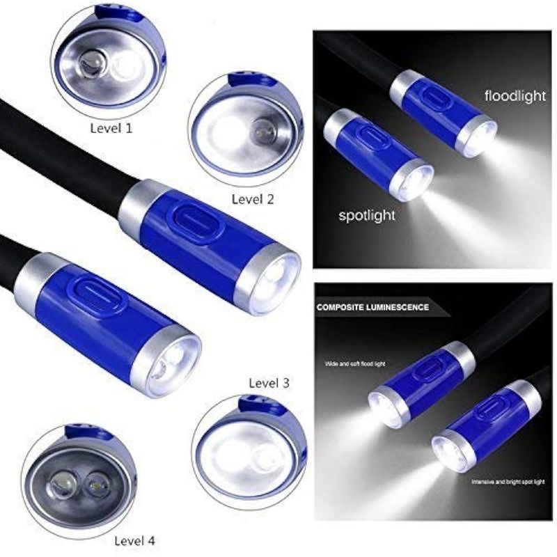 Luz manos libres: no más sostener una linterna con la mano o por la boca, o llevar un faro en la cabeza, asintiendo con la cabeza como un robot para ajustar las direcciones de la luz cuando estás leyendo o ocupado leyendo. La banda flexible para el cuello te ayuda a concentrarte en lo que estás haciendo sin preocuparte por la luz, siempre que estés leyendo en la cama o en el automóvil, pasear al perro, reparar, hacer manualidades, trabajar y muchos otros.