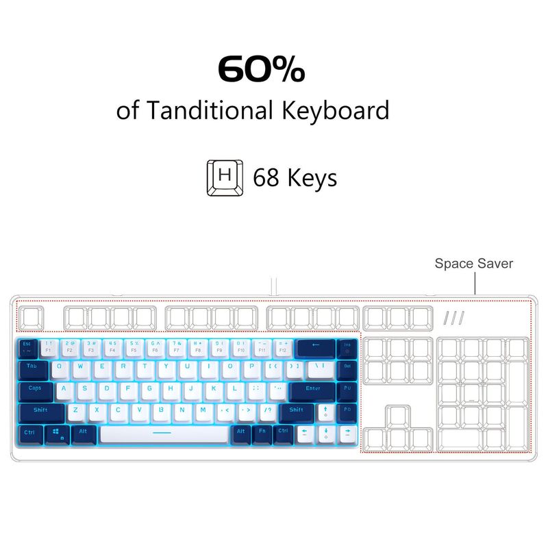 MageGee MK-Box - Teclado mecánico portátil 60% para juegos, retroiluminación LED, compacto, 68