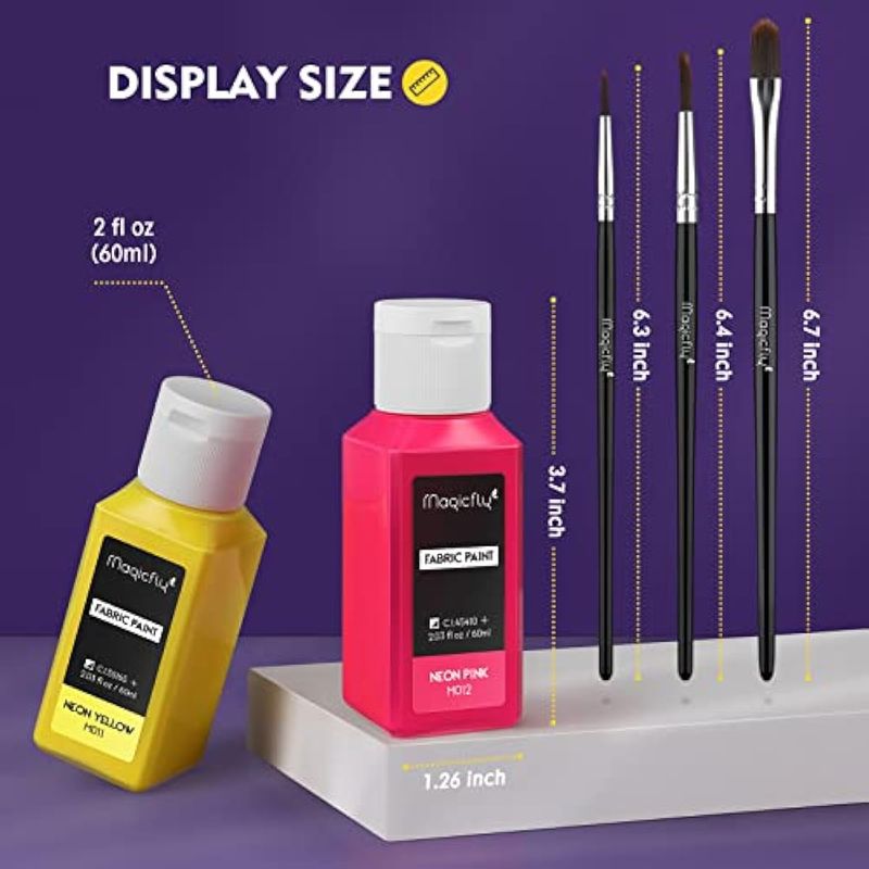 Magicfly Juego de 14 pinturas de tela suave permanente (2.3 onzas líquidas cada una) con 3 pinceles,